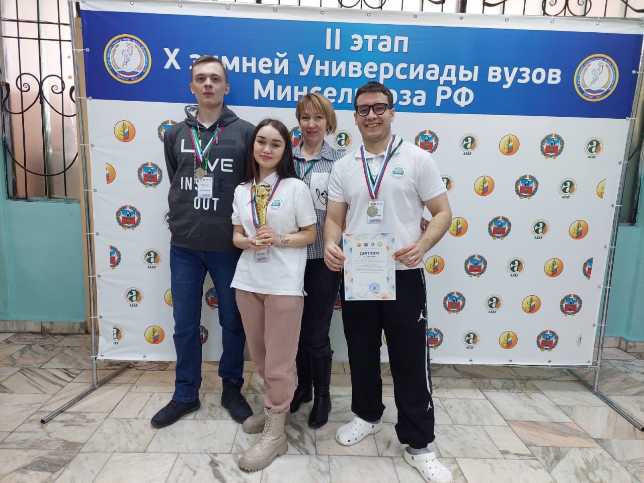 Ректорат Алтайского ГАУ направил ректору ГАУ Северного Зауралья Елене Бойко Благодарственное письмо с признательностью за поддержку участия тюменской команды во II этапе X зимней Универсиады вузов Минсельхоза России. Спортивные соревнования студенческой молодежи аграрных вузов стали доброй традицией, дают импульс развитию вузовского спорта и укреплению здоровья будущих специалистов агропромышленного комплекса, отмечено в письме.