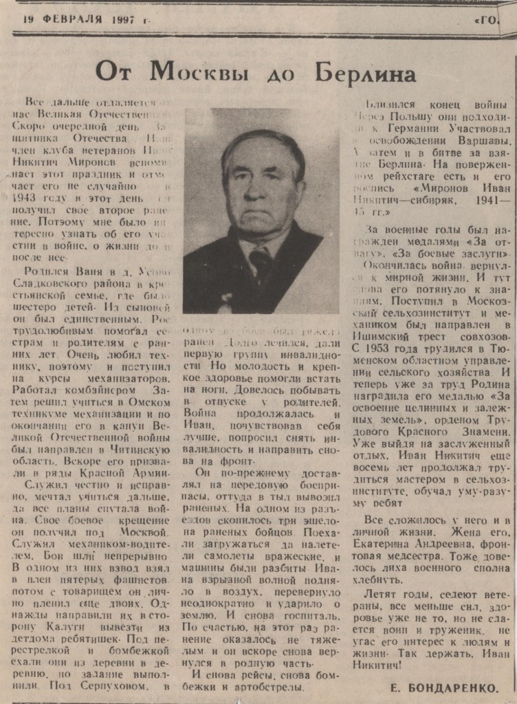 По воспоминаниям Ивана Миронова:
